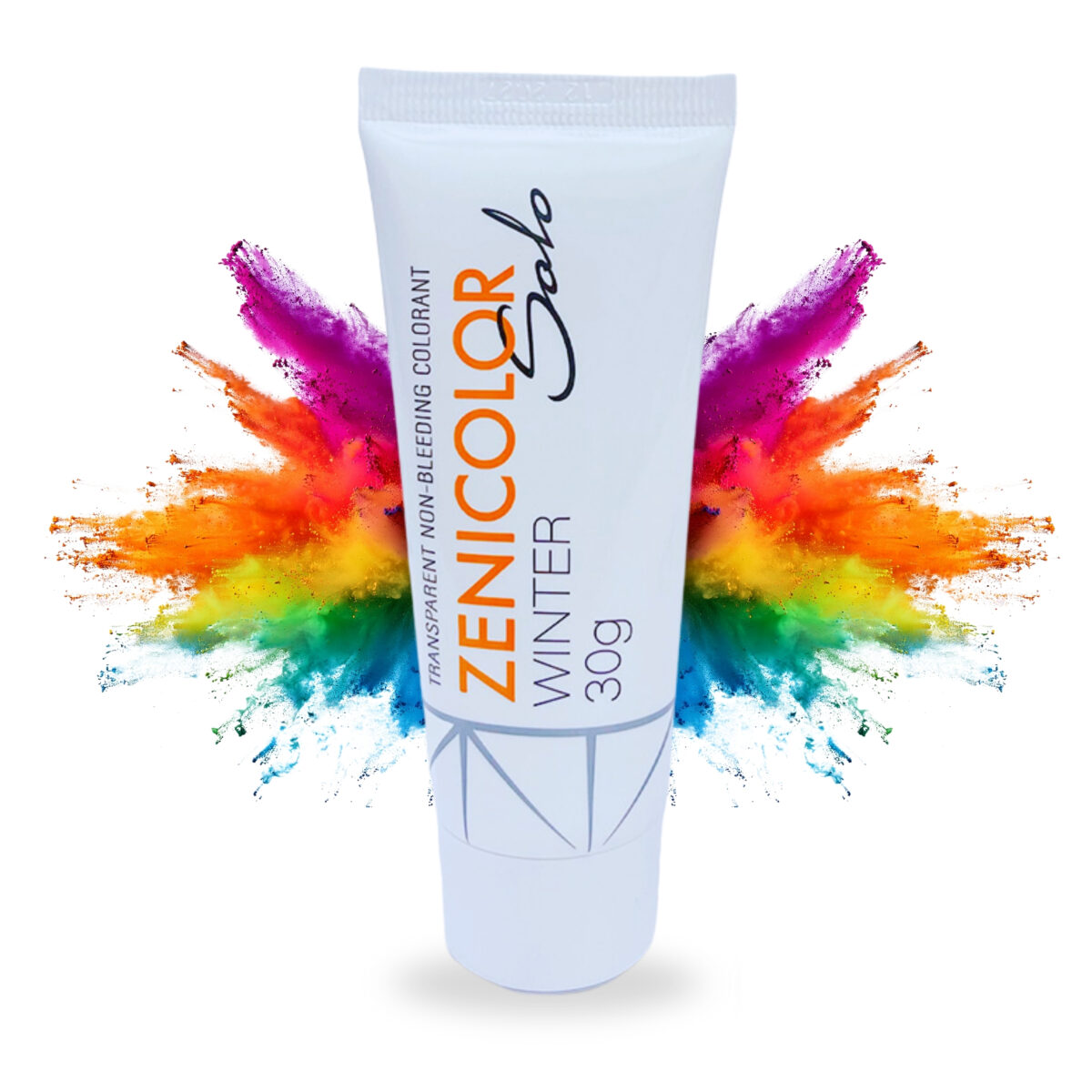ZENICOLOR WINTER 30 g (tuba) to profesjonalny, wysoko skoncentrowany barwnik kosmetyczny przeznaczony wyłącznie do barwienia baz mydlanych typu melt & pour. Kluczową cechą produktu jest jego niemigrujący charakter — pigment pozostaje dokładnie w tej warstwie, w której został zastosowany i nie przenika do sąsiednich warstw ani nie „rozlewa się” w czasie. Dzięki temu barwnik pozwala uzyskać ostre, stabilne linie kolorystyczne oraz pełną kontrolę nad projektem mydła. Żelowa konsystencja zapewnia precyzyjne dozowanie, wysoką wydajność oraz powtarzalność koloru w każdej partii produkcyjnej.