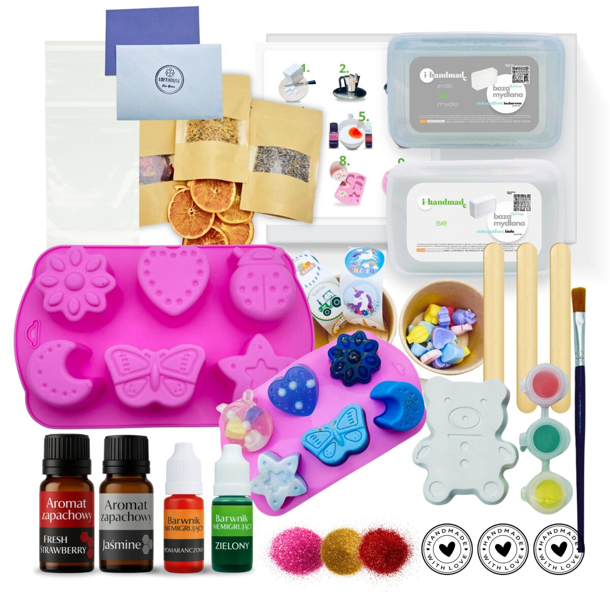 Duży zestaw do samodzielnego wykonania mydełek glicerynowych – kreatywna zabawa dla dzieci i całej rodziny
