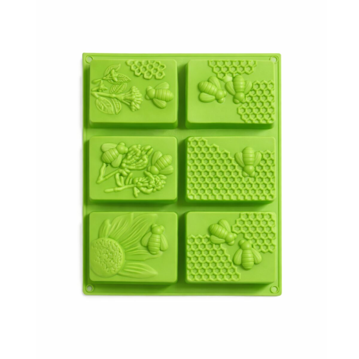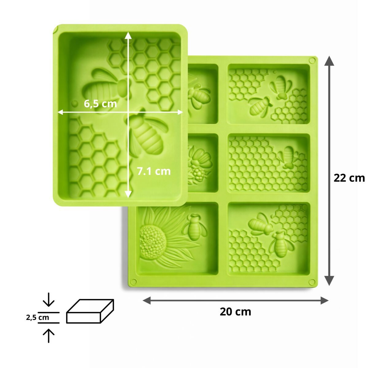 Forma silikonowa z motywem pszczół i plastra miodu przeznaczona do wykonywania dekoracyjnych odlewów z bazy mydlanej, wosku sojowego, wosków zapachowych oraz gipsu polimerowego. Wzory inspirowane naturą – pszczoły, plaster miodu i roślinne detale – pozwalają tworzyć estetyczne i bardzo charakterystyczne produkty handmade. Dzięki dobrze zaprojektowanej strukturze silikonowej forma dokładnie odwzorowuje detale wzoru, co pozwala uzyskać wyraźne odlewy nawet przy pracy z bazami mydlanymi czy woskami zapachowymi. Elastyczny silikon ułatwia wyjmowanie gotowego odlewu bez uszkodzeń. Forma doskonale sprawdzi się zarówno w produkcji domowej, jak i podczas warsztatów rękodzielniczych, zajęć kreatywnych oraz małoseryjnej produkcji mydeł i świec.
