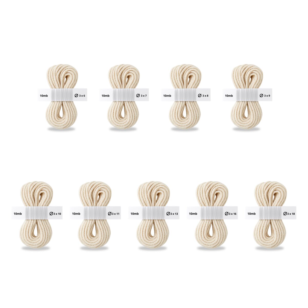 Knot bawełny 3×10 ( splot 3 nici po 10 nitek – ok. 2 mm szerokości) to wysokiej jakości, niebielony surowy bawełniany sznurek, bez dodatkowego usztywnienia w postaci rdzenia – dedykowany do świec własnej produkcji. To jeden z najbardziej uniwersalnych knotów, chętnie wybierany zarówno przez osoby początkujące, jak i doświadczone w tworzeniu świec.