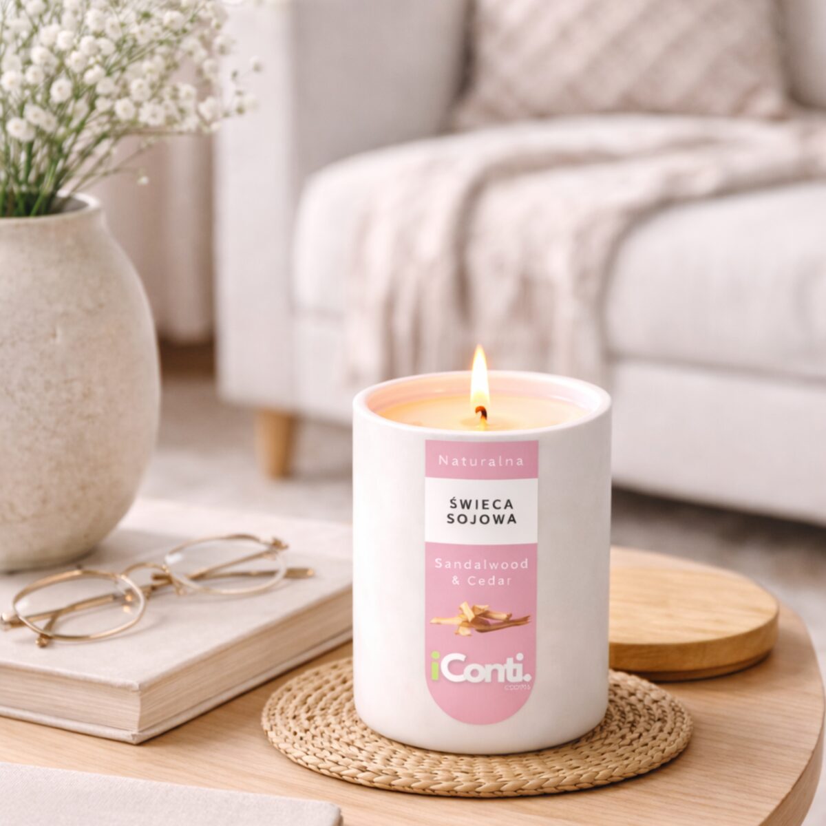 Świeca Sandalwood & Cedar doskonale sprawdzi się w pomieszczeniach, w których chcesz stworzyć spokojną i elegancką atmosferę. Ciepły, drzewny zapach drewna sandałowego i cedru wprowadza do wnętrza poczucie harmonii i naturalnego komfortu. To aromat idealny na wieczorny odpoczynek, czytanie książki, relaks po pracy czy spokojne spotkania z bliskimi. Świeca świetnie komponuje się z wnętrzami w stylu naturalnym, skandynawskim, boho lub minimalistycznym.