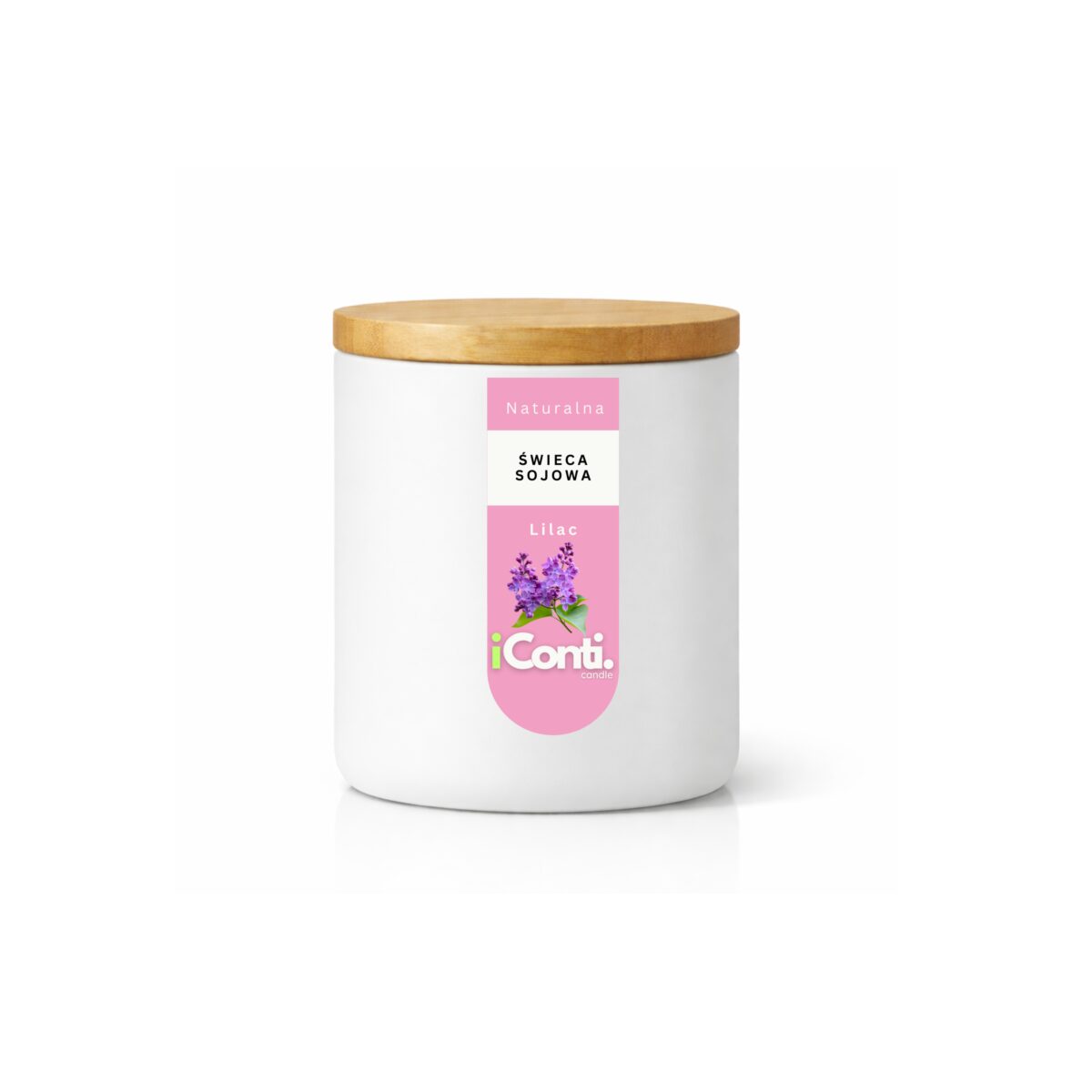 Elegancka świeca zapachowa Lilac zamknięta w minimalistycznym, matowym białym szkle z naturalną drewnianą pokrywką. Prosta forma opakowania sprawia, że świeca doskonale pasuje do nowoczesnych wnętrz – salonu, sypialni czy przestrzeni relaksu.Zapach Lilac inspirowany jest aromatem świeżo kwitnącego bzu. To kompozycja kwiatowa, delikatna i świeża, która wypełnia pomieszczenie przyjemnym, naturalnym zapachem wiosny. Aromat jest subtelny i elegancki – nie jest ciężki ani duszący, dzięki czemu świetnie sprawdza się zarówno podczas codziennego użytkowania, jak i wieczornego relaksu.Świeca została wykonana z wysokiej jakości wosku roślinnego, który zapewnia równomierne topienie oraz stabilne uwalnianie zapachu. Naturalna drewniana pokrywka chroni aromat świecy przed ulatnianiem się oraz zabezpiecza ją przed kurzem podczas przechowywania.