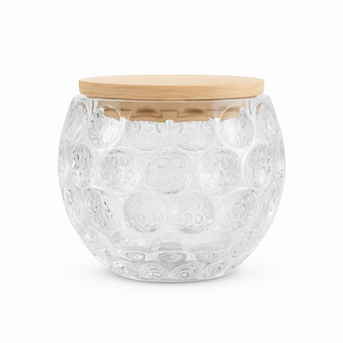 Elegancki pojemnik wykonany z grubego, przezroczystego szkła o unikalnej strukturze wklęsłych bąbelków. Dzięki swojemu dekoracyjnemu wyglądowi sam w sobie stanowi ozdobę wnętrza, a po wypełnieniu woskiem i zapaleniu świecy pięknie rozprasza światło.