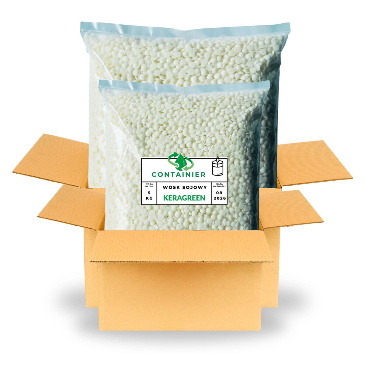 Wosk sojowy Keragreen Container 5 kg – Do świec w pojemnikach + gratis