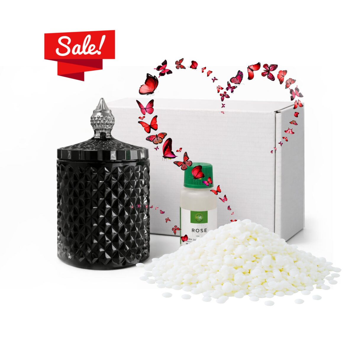 Zestaw do tworzenia świecy sojowej – Czarny połysk Kryształ 280 ml