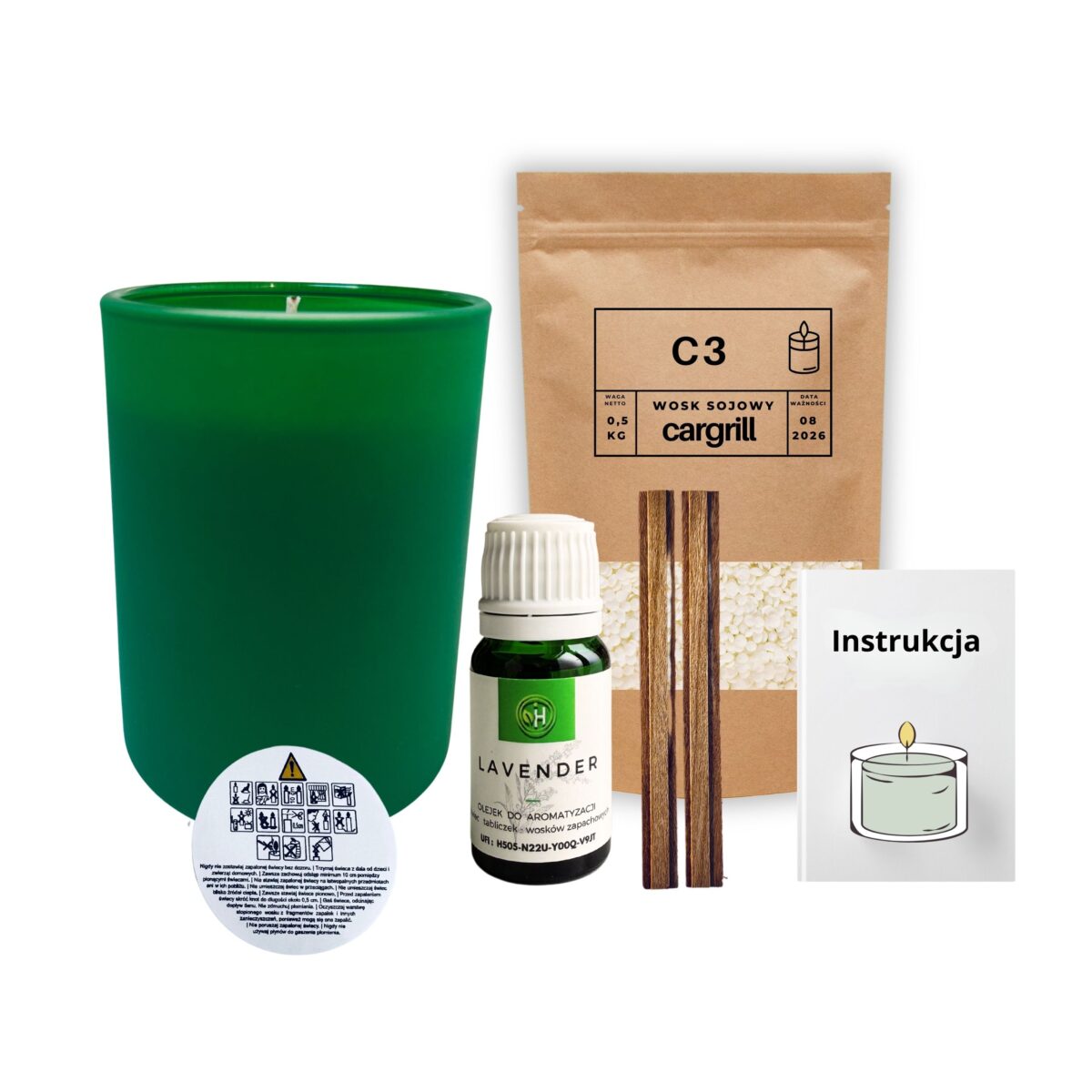 Zestaw do tworzenia świecy sojowej – zielone szkło!