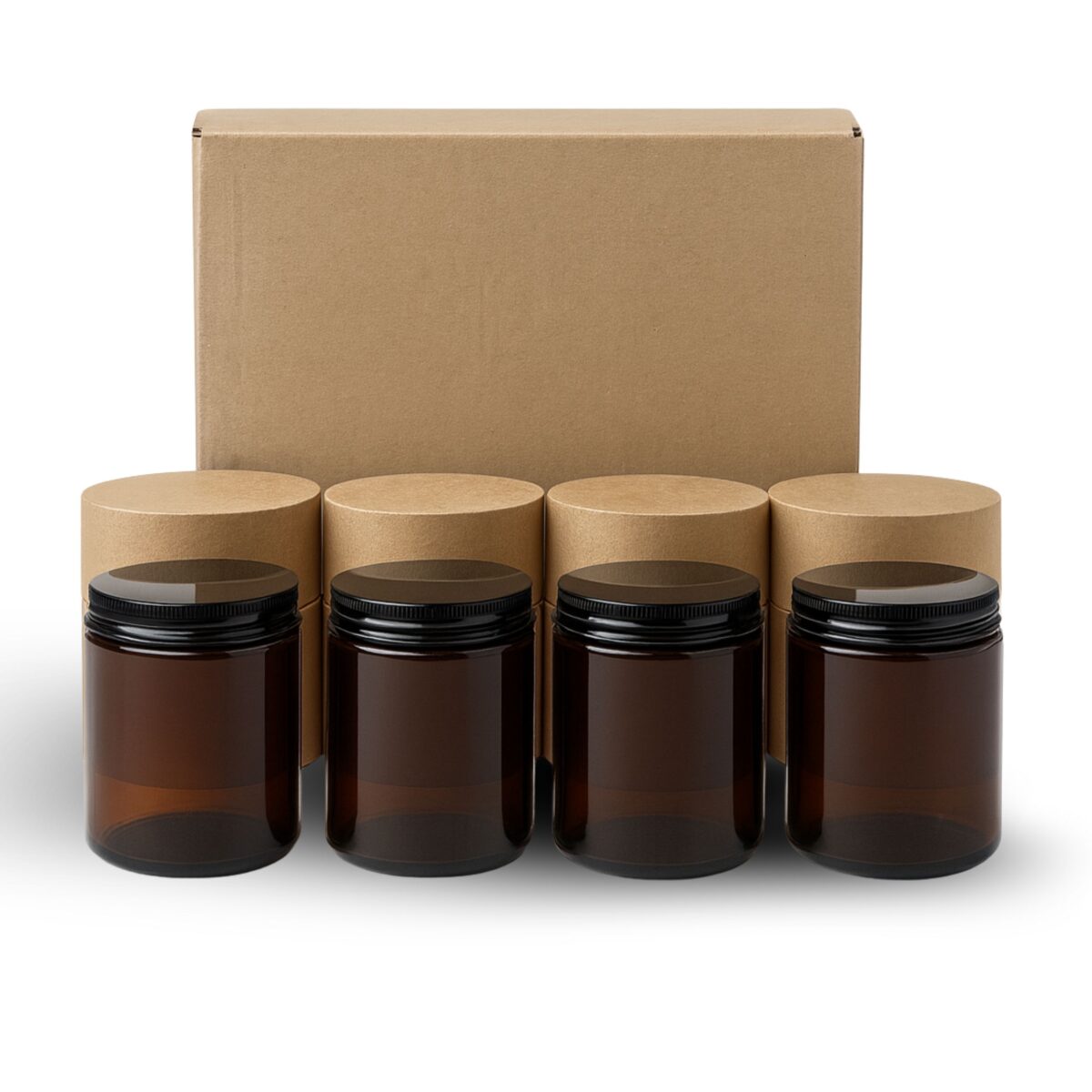 Zestaw opakowań kraft 4 x słoik szklany amber do świec sojowych