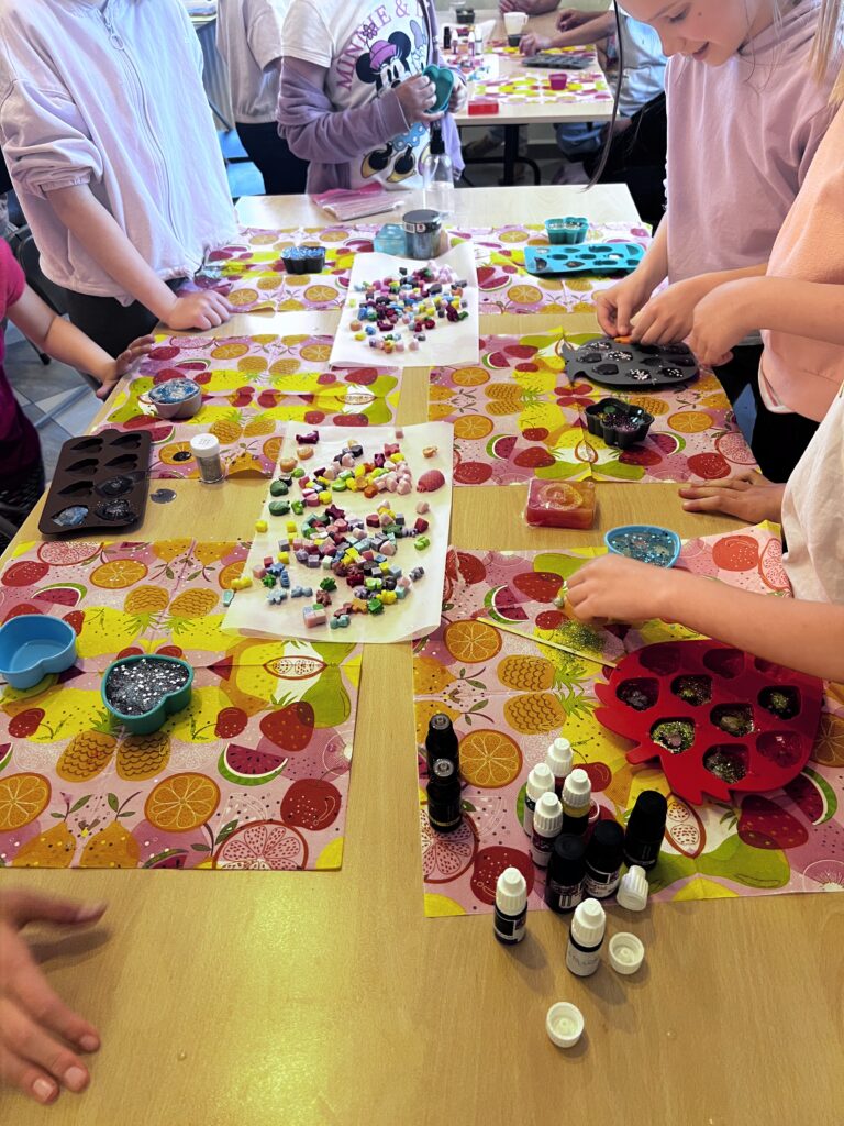 Podczas wydarzenia dzieci będą mogły samodzielnie wykonać glicerynowe mydełka – kolorowe, pachnące i pełne wyobraźni. To doskonała okazja, by poznać podstawy mydlarskiego DIY oraz zainspirować się do tworzenia własnych kosmetyków w domu.
